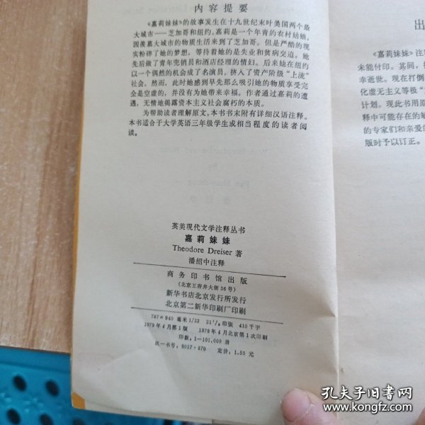 [美]西奥多·德莱塞著 注释 / 北京 商务印书馆 / 1979-04 / 平装