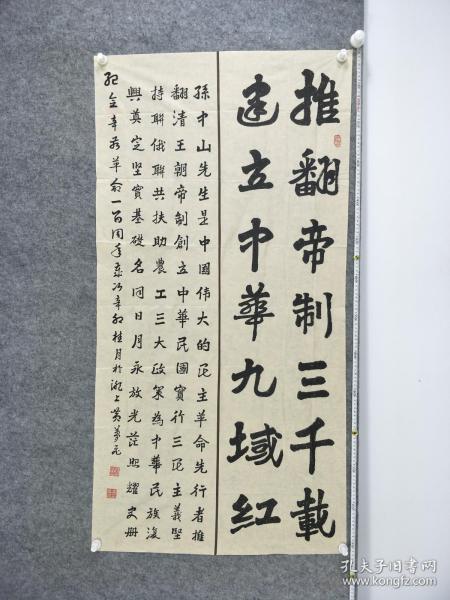 作者 B9755号书法 推翻帝制三千载 建立中华九域红 132×65cm 作者:黄梦飞