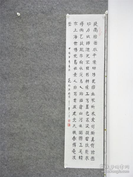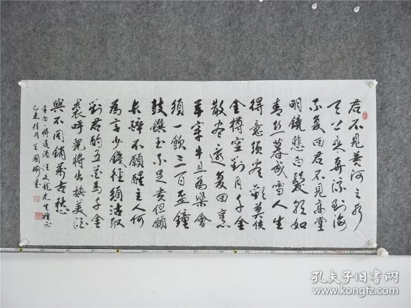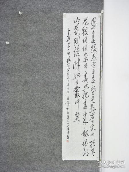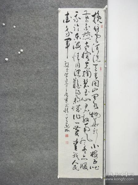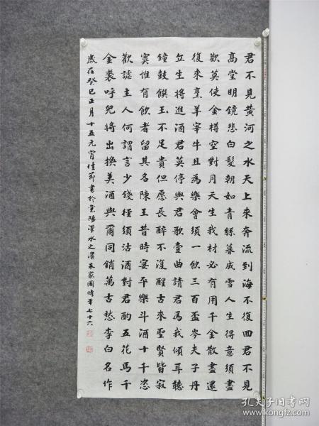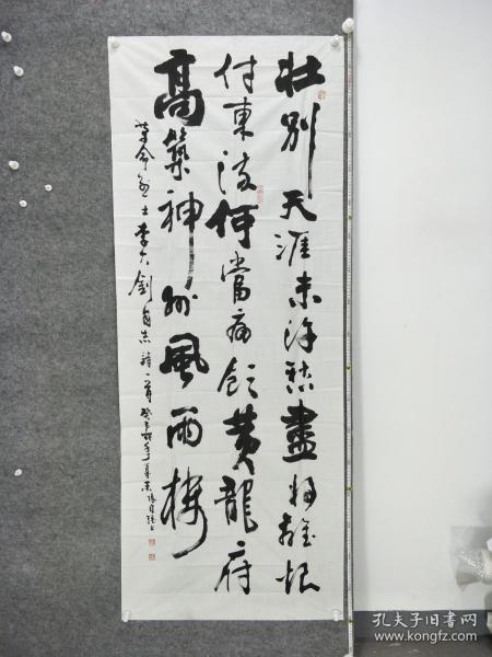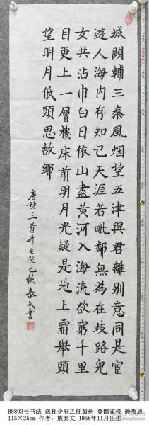 作者 B9181号书法 李大钊 口占一绝 壮别天涯未许愁, 尽将离恨付东流. 何当痛饮黄龙府, 高筑神州风雨楼. 138×48cm 作者:张自强