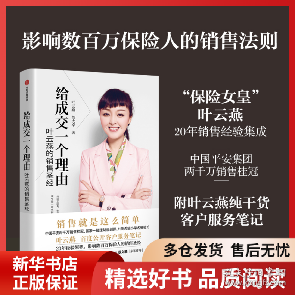 中国平安两千万销售桂冠、国家一级理财规划师、11所希望小学名誉校长叶云燕,公开20年行业经验,影响数百万保险人的销售圣经。平安董事长马明哲、美图董事长蔡文胜亲笔作序。后记附叶云燕纯干货客户服务笔记。