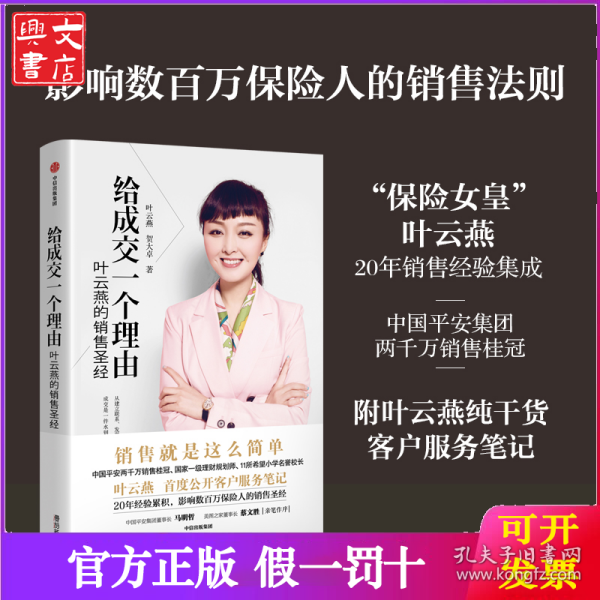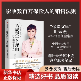 保险 中国平安两千万销售桂冠、国家一级理财规划师、11所希望小学名誉校长叶云燕,公开20年行业经验,影响数百万保险人的销售圣经。平安董事长马明哲、美图董事长蔡文胜亲笔作序。后记附叶云燕纯干货客户服务笔记。 新华书店全新正版书籍