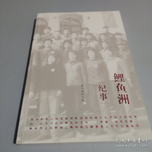 江西鲤鱼洲,20世纪70年代初北京大学、清华大学两校的“五七干校”。《鲤鱼洲纪事》是北京大学中文系师生、工农兵学员、家属子女对当时鲤鱼洲干校生活的回忆散文的结集。这些长长短短的散文随笔,是当事人的“片断记忆”,而非“历史结论”。《鲤鱼洲纪事》有由陈平原主编。     陈平原,文学博士,北京大学中文系教授及系主