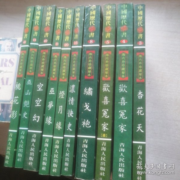 怡情逸史(上、下)、禅真逸史(上)、禅真逸史(下) 第一美女传 、空空幻 无声戏、国色天香、豆棚闲话 闺门秘术、金石缘 醋葫芦、五美缘全传 八段锦、青楼梦、隔帘花影、万花楼、绿野仙踪(上、中、下)、子不语(上、中、下)、蜃楼志 珍珠舶