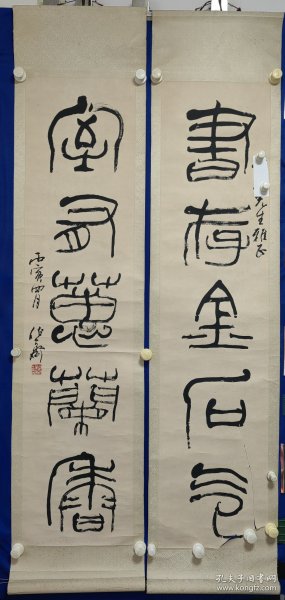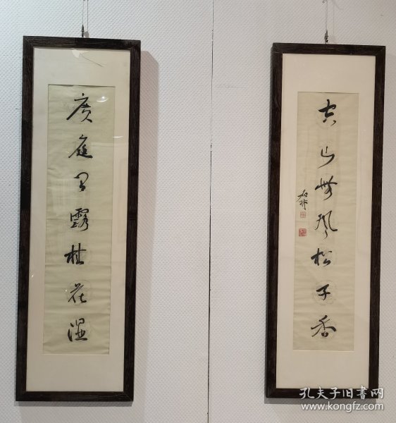 作者 何加林 书法对联137×34×2托片(保真私洽)何加林,中国美术学院教授,杭州美术家协会副主席,杭州画院副院长,中国美术家协会会员。作品曾获第三届当代中国山水画铜奖,十届全国美展银奖,全国首届山水画金奖。