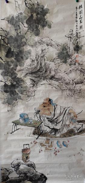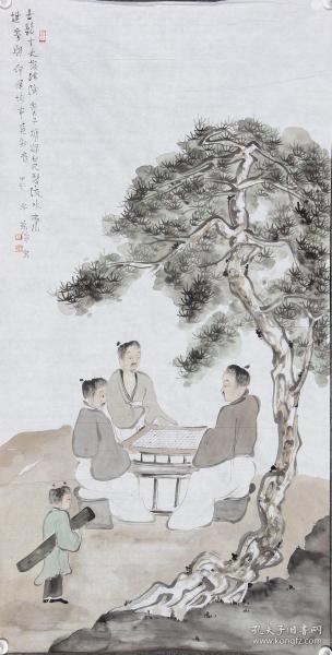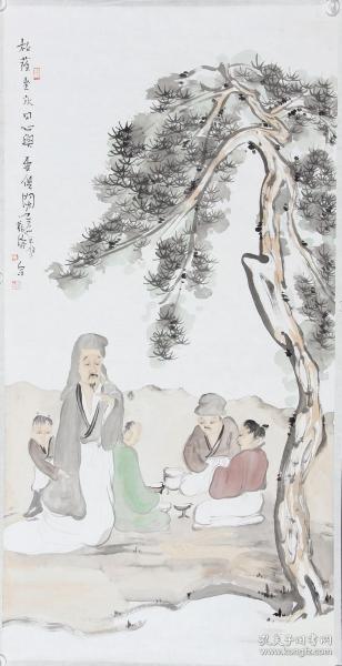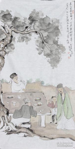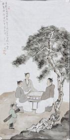 作者 天津美院讲师、潜力画家苏涛136*69cm四尺人物托片—松荫坐永日