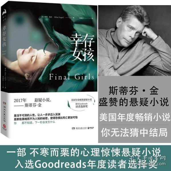 掀起欧美阅读狂潮的超级书,美国年度悬疑小说:goodreads年度读者选择奖,入选受读者喜爱的书 斯蒂芬·金盛赞:“2017年悬疑小说。” 悬念迭起且令人惊叹人之恶的心理悬疑力作:《幸存女孩》探讨爱与友谊,秘密与信任,有时候,恐惧比更加可怕。这是一部能让人通过文字感觉不寒而栗的心理悬疑小说,故事情节在十年后的纽约和十年前的“松林小屋”交替展开,情节起承转合间制造一个接一个的谜团,不到后一页,你永远