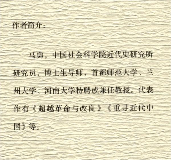 本书详尽地叙述了义和团运动和庚子国难的来龙去脉,分析了八国联军入京原因,让读者对这一段历史的真相有新的认识。清政府引狼入室,终至统治力量显著下降,中国陷入一片混乱之中。   马勇  中国社会科学院近代史研究所研究员,博士生导师,主要从事中国近代史、近代中国文化、中国文明史等研究。  著有"晚清四书"系列:《觉