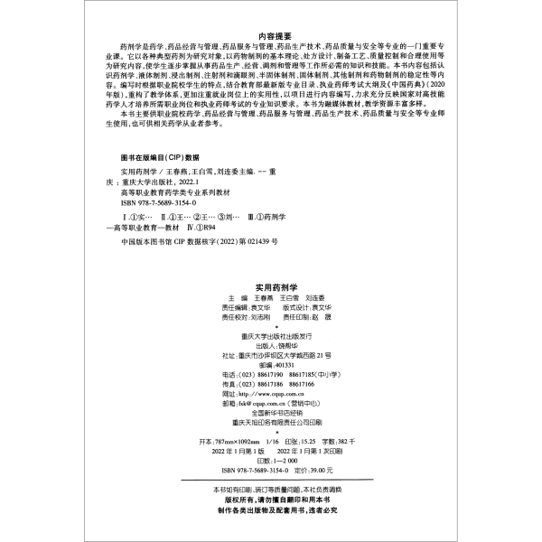 王春燕编,王编,刘连委5编 / 重庆大学出版社 / 2022-01 / 平装