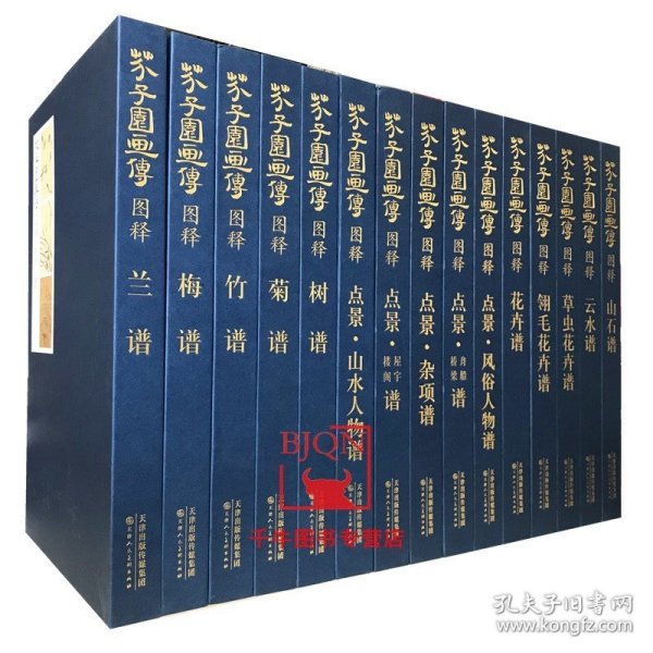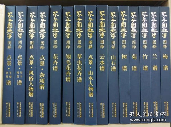 精装芥子园画传图释全套15册 铜版纸散页 精美盒装梅兰竹菊山石树人物舟船楼阁桥梁屋