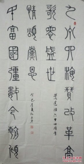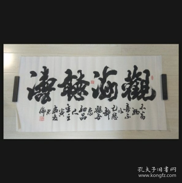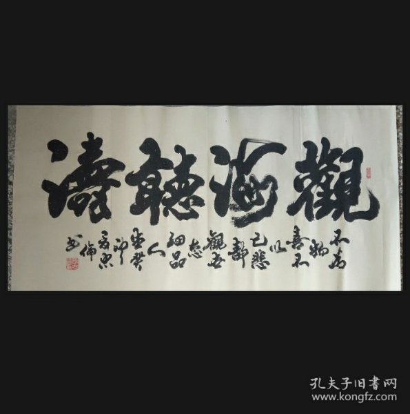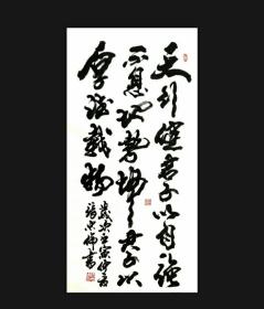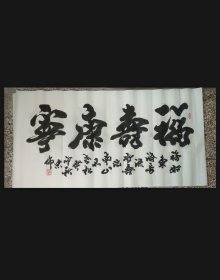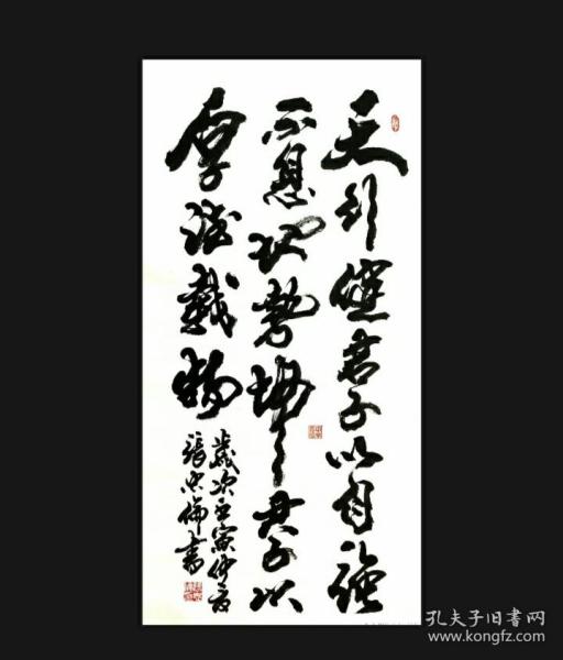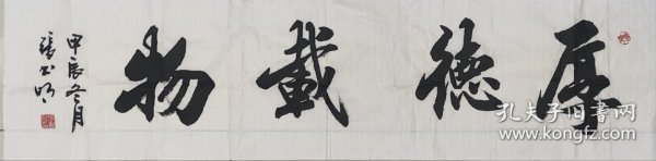 作者 张书明中国书画家协会理事青岛墨海书画院院长 书法作品《厚德载物》宣纸,四尺对开尺寸138*34低价放漏