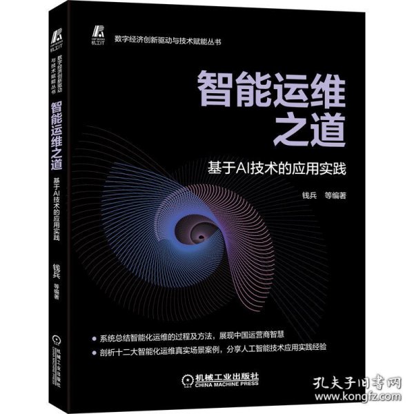 本书适合从事企业数字化转型建设工作的一线从业者、管理者,尤其适合在ICT领域从事运维工作的人员学习。钱兵,现任中国电信研究院 AI 研发中心能力研发总监、AI创新工作室负责人,美国营销国际协会大数据营销专家讲师,高校外聘专家讲师,发表SCI/EI/核心论文多篇。拥有10多年数据分析和挖掘工作经验,目前主要从事人工智能和大数据技术在网络 AI、泛娱乐大数据、商业地理洞察等领域的研发工作。