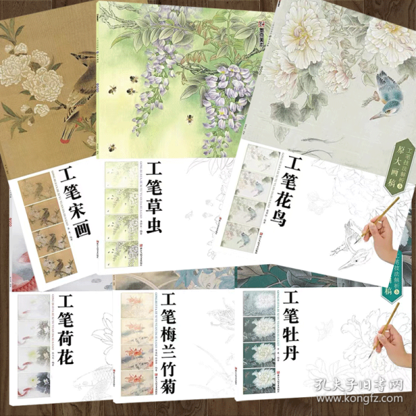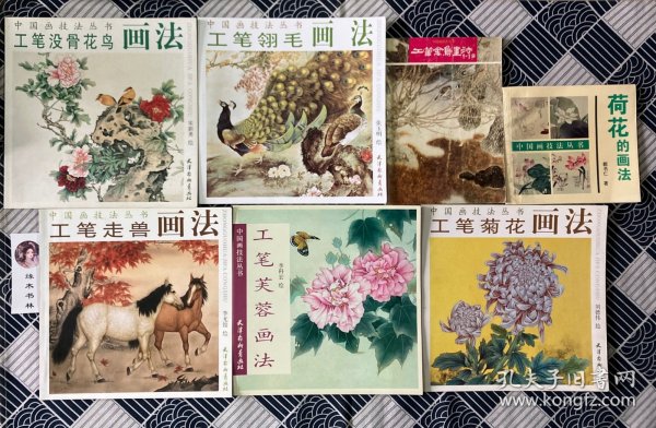 工笔走兽画法,工笔没骨花鸟画法、工笔翎毛画法、工笔芙蓉画法、工笔菊花画法、荷花的画法、工笔禽鸟画法(七本同售)