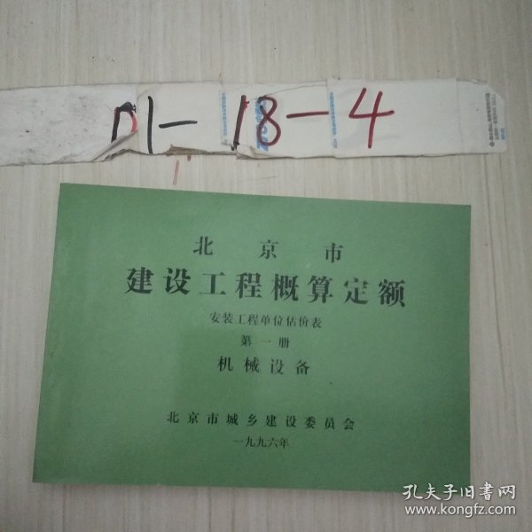 出版社 全国统一安装工程预算定额 天津地区单位估价表 第一册 机械设备安装工程