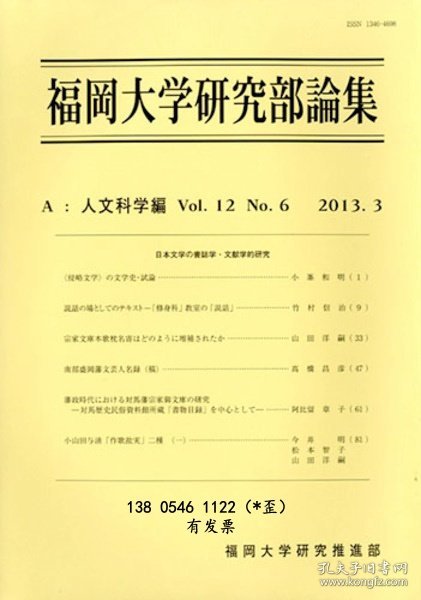 出版社 福冈大学研究部论文A:人文科学篇第12卷第6期日本文学的书目学和文献学研究 福岡大学研究部論集 A