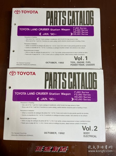 丰田陆地巡洋舰3400吉普车维修手册(上下册)正版书内无勾划笔记 上册书后页边有点点破损章印,实物拍摄,品相见图描述为准,当天发货