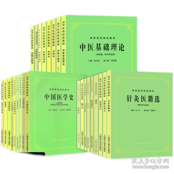著名的五版教材系列,供中医、中药、针灸专业用。中医基础理论+伤寒论讲义+中医诊断学+金匮要略讲义+中药学+内经讲义+方剂学+中药炮制学+中医内科学+针灸治疗学+中医外科学+中医伤科学+中医妇科学+针灸医籍选+中医儿科学+中国医学史+针灸学+中药药理学+温病学+中医眼科学+推拿学+中医各家学说+腧穴学+各家针灸学说+经络学+中医耳鼻喉科学,全套共26本,老一辈著名中医学家集体智慧的结晶!