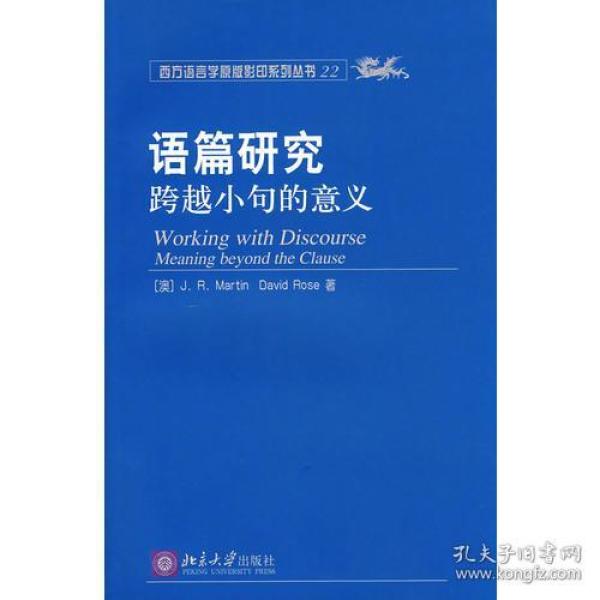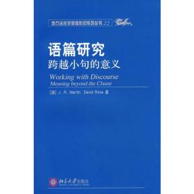 《语篇研究:跨越小句的意义》由马丁教授和罗斯博士合著,本书是马丁对其《英语语篇:系统和结构》(English Text:systern and Structure)的发展和应用,是篇章语义学研究的又一力作。 本书将系统功能语言学中较晦涩的理论“平民化”,对一些难懂的术语作了深入浅出的解释和例析。书中所采用的语料包括多种语类,如故事、议论和立法。本书*的贡献是作者提出