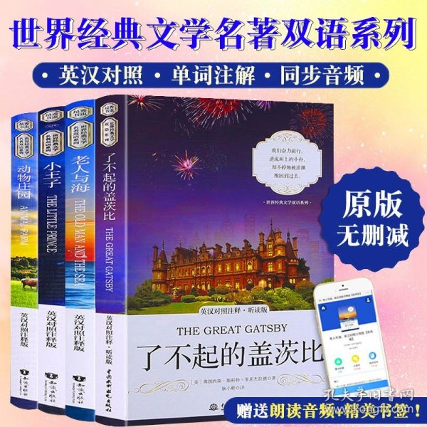 正版全4册小王子+老人与海+动物庄园+了不起的盖茨比原著无删减中英文双语读物书籍畅销书经典名著初中生英文阅读文学小说世界名著