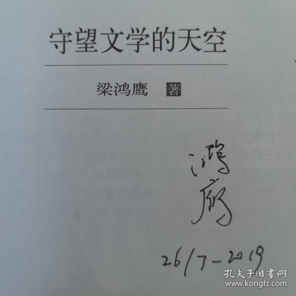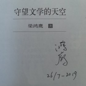 南开大学世界文学专业硕士、中国作协主席团委员、全委会委员、全国中青年德艺双馨文艺工作者荣誉称号获得者梁鸿鹰签名上款