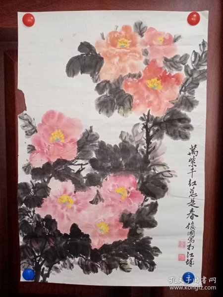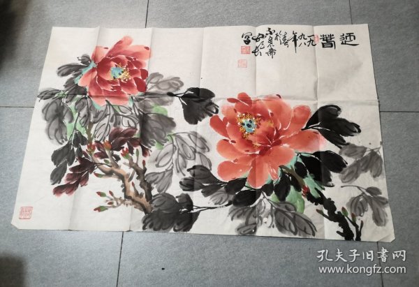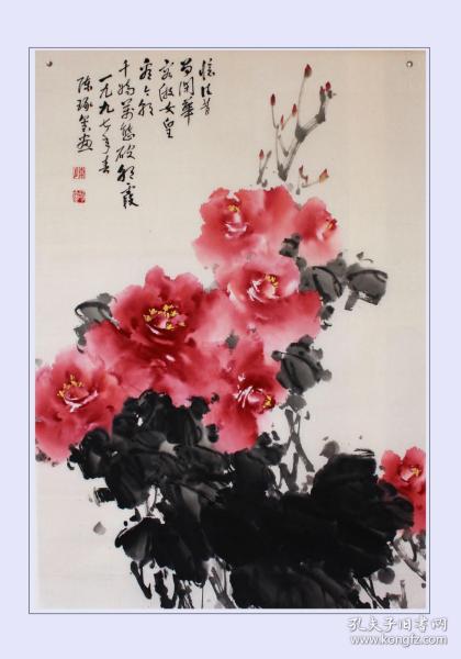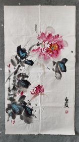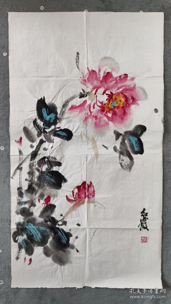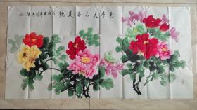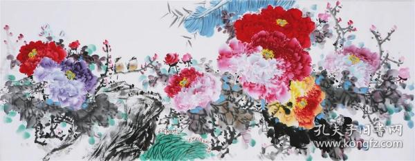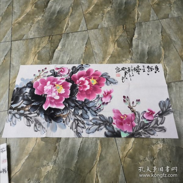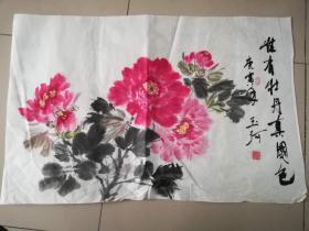 作者 B40822号 写意花卉 牡丹 70×39cm 作者:红霞