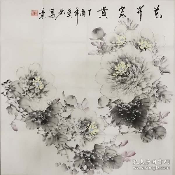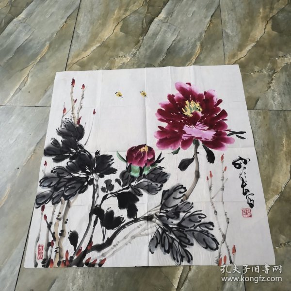 作者 B44122号写意花卉 牡丹 50×54cm 作者:杨善深