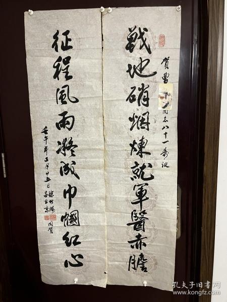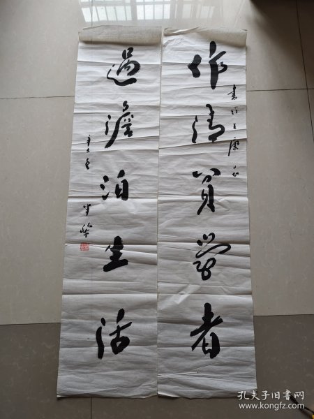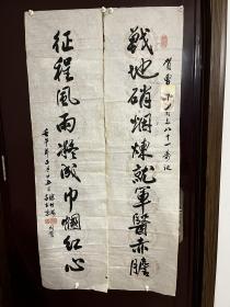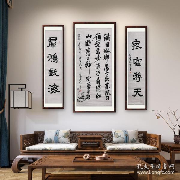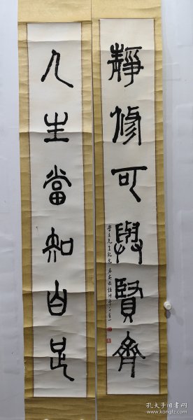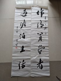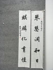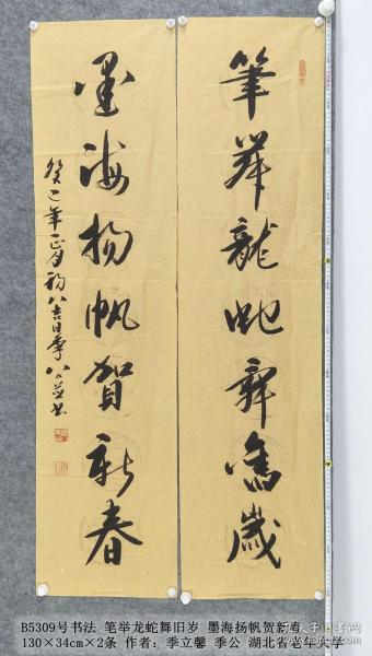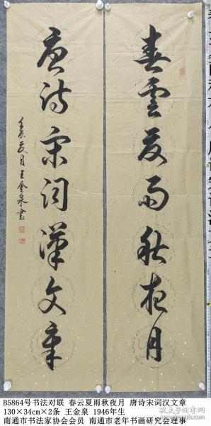作者 B5864号书法对联 春云夏雨秋夜月 唐诗宋词汉文章 130×34cm×2条 王金泉
