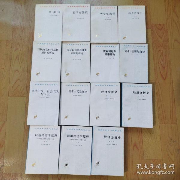 理想国 哲学史教程上下卷,西方哲学史下卷,国民财富的性质和原因的研究上下卷,就业利息和货币通论,货币信用与商业,资本主义社会主义与民主,资本主义发展论,经济分析史第一,第二,第三券,政治经济学原理上下卷
