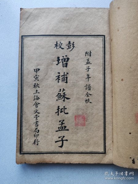 清黎庶昌编辑,李翰章审定。清光绪二年(1876)长沙传忠书局刊本影印,《曾文正公年谱(套装上下册)/清末民初文献丛刊》十二卷,前有卷首一卷,后附《孟子要略》。是谱记嘉庆十六年(1811)至同治十一年(1872)曾国藩生平。谱内引用大量奏稿详记曾国藩镇压太平天国、捻军,办洋务、处理教案等情况。