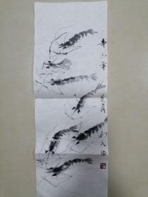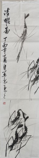 作者 安徽省美术家协会会员王运输丁酉年(2017年)手绘国画《清》四尺对开尺寸138*34,软片