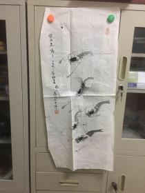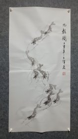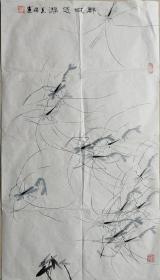 作者 安徽省美术家协会会员王运输丁酉年(2017年)手绘国画《清》四尺对开尺寸138*34,软片