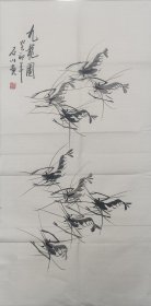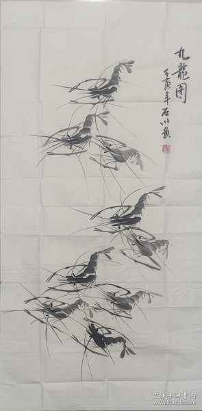 作者 当代优秀国画名家-石川国画水墨《九龙》软片尺寸100*50