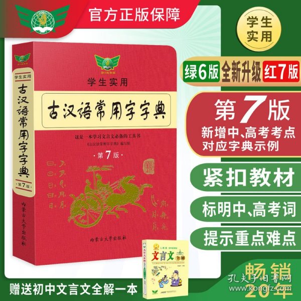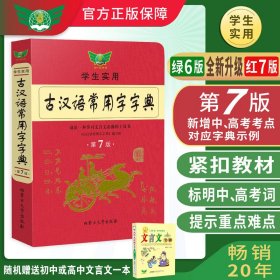 本词典从学生学习文言文和一般读者阅读古籍的需要出发,收录古汉语常见字7000多个(包括繁体字、异体字);此外还收录了古汉语常用复音词10000多条。本词典所选条目有的来自目前中学语文教材文言文,有的来自其他常见古代典籍,例句精短,难懂的例句附有注解或串讲。尤其值得一提的是,本词典释义简明,在单字义项前标注了词性,并结合教学实际,指出词类活用的情况;部分单字下还设有【注】和【辨】