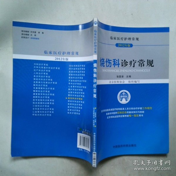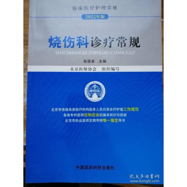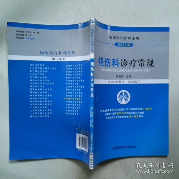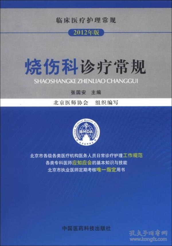 《临床医疗护理常规(2012年版):烧伤科诊疗常规》是根据卫生部《医师定期考核管理办法》的要求,由北京医师协会组织全市烧伤科专家、学科带头人及中青年业务骨干共同编写而成。其体例清晰、明确,内容具有基础性、专业性、指导性及可操作等特点,既是专科医师应知应会的基本知识和技能的指导用书,也是北京市烧伤科专科领域执业医师“定期考核”业务水平的惟一指定用书。,《临床医疗护理常规(2012