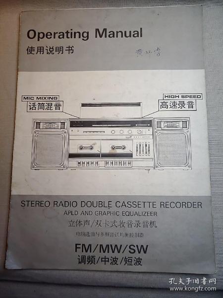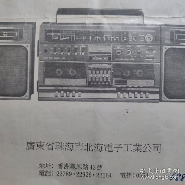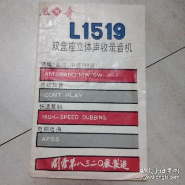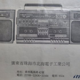 出版社 广东珠海北海电子工业公司立体声双卡组合音响使用说明书。广东珠海录音机收录机