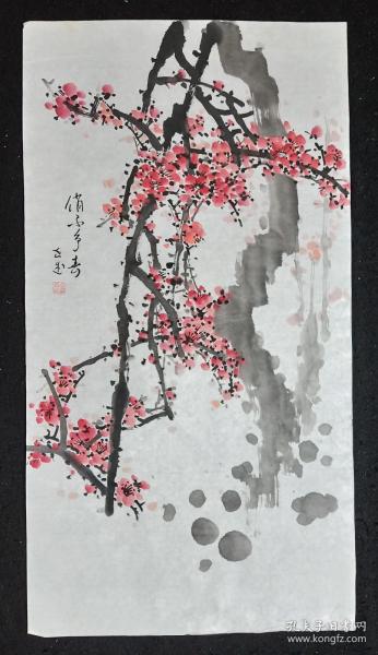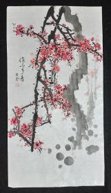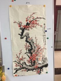 作者 辽宁画家王雪英国画梅花一幅68*134CM