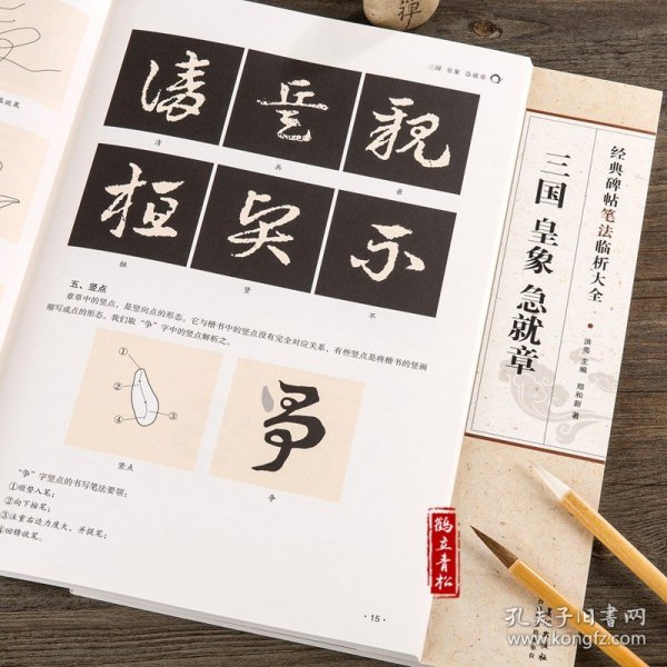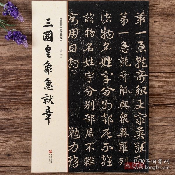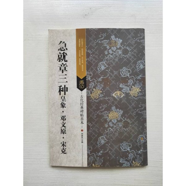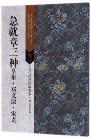 本册《急就章》,相传为三国时吴皇象所书。宋人叶梦得获唐人摹本,书正书释文并列于旁,并刻于颍昌。其摹本缺三百余字。明正统四年(1439),吉水杨政据叶梦得拓本临摹上石,所缺之字以元末明初宋克临本补全。因刻于松江,故称《松江本急就章》。此石高185cm,宽93cm,厚22.5cm。碑阳6栏,栏33行,行11字。