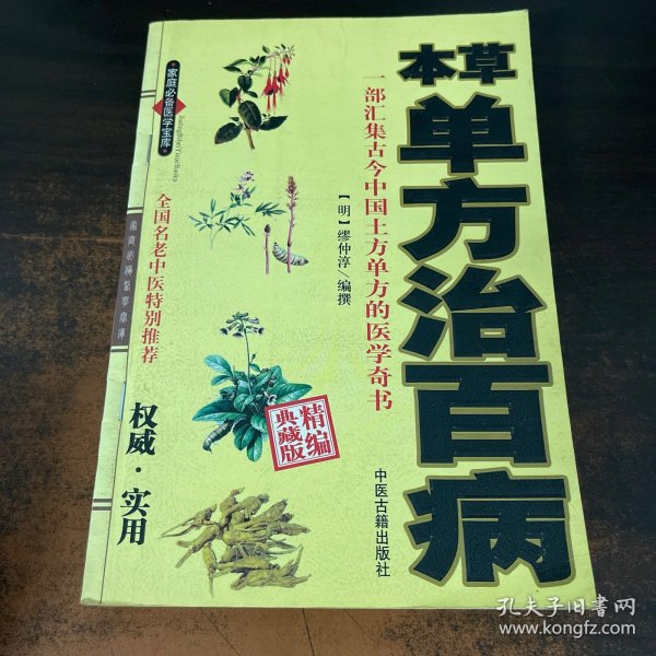 《本草单方》系我国明代著名的中医药学家缪希雍(字仲淳)收集明代以前中医药著作499种,并从中摘录出实用、有效的单方、验方、秘方、效方以及作者毕生搜罗的民间疗法及民间秘方等编撰而成,为我国清代之前的单方、验方、秘方之大全。该书内容翔实、实用性强、应用范围广,又是总结明代以前单方、验方、秘方最为完整的大全,参考书籍众多,其中有些现已散佚,因此价值更大。