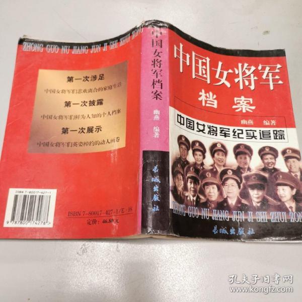 这是一本披露中国女将军个人档案的书。19位女将军鲜为人知的成长经历,引人入胜的趣闻轶事,英姿绰约的动人画卷,让人掩卷难忘。,这是一本涉足中国女将军情感空间的书。19位女将军家庭的悲欢离合,生活的油盐酱醋,人生的酸甜苦辣,读后感慨万千。,女将军是军中的一道亮丽风景,是一种钢铁也是温柔的美丽,使亿万女性为之骄傲,引无数男儿竞折腰。让我们一起翻开女将军的个人档案,走近女将军的情感空间