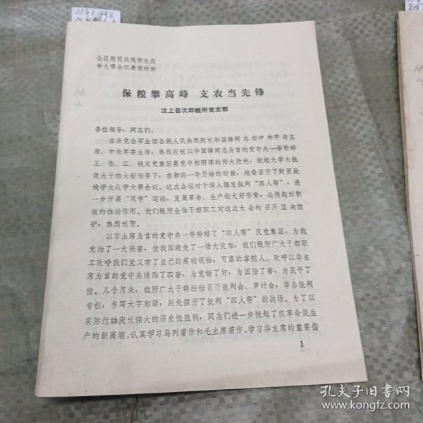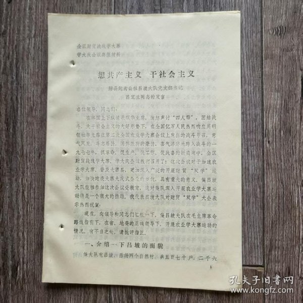 作者 滕县鲍沟公社吕坡大队党支部书记吕宜兰同志发言