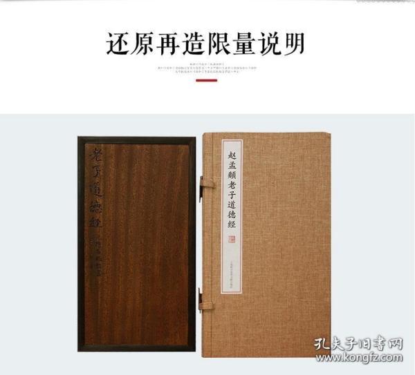 【可开发票】此本《道德经》由元代最有成就的书画大家赵孟頫书写。国家图书馆藏赵本《道德经》书于元延祐三年题:“大德十一年岁在丁未十二月廿六日,吴兴赵孟頫书。”赵氏时年六十三岁,字体工整秀丽,笔法稳健,独具风格。书法继承晋唐以来的小楷传统,法度严谨,字形峭拔秀丽,结体妍媚舒展,笔法劲健圆润。此帖是传世赵书小楷法帖中的珍稀之本,全帖凡五千三百四十六字,首尾一致,无一懈笔,被前人称为“所谓亲见仙人吹玉笛也