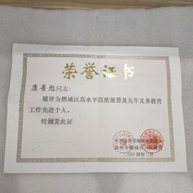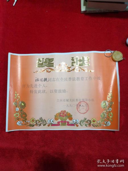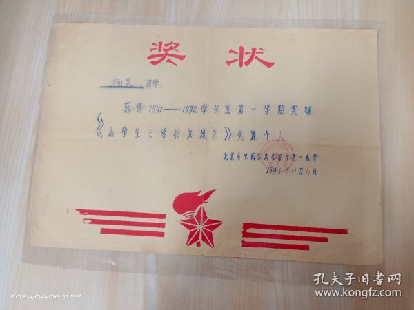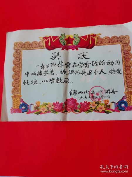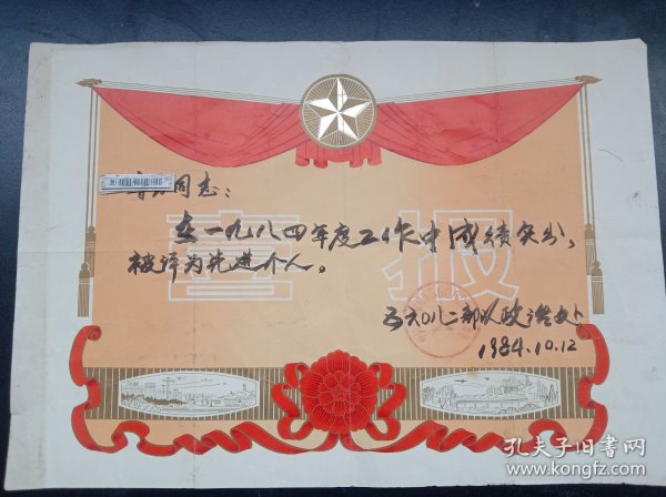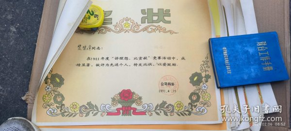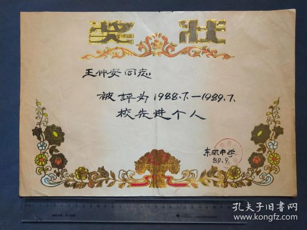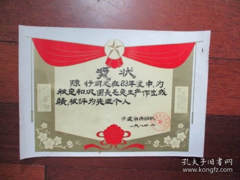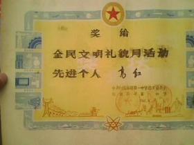 出版社 奖状/郭辉同学在第二个全民文明礼貌月被评为先进个人/新沂县炮车中学/1983年4月