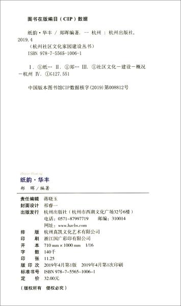 《纸韵华丰/杭州社区文化家园建设丛书》通过对华丰社区的历史风貌、文化传承和社区事件、社区精英人物的实地采访、调研,展现华丰社区老旧小区精神文化家园的标杆,感受文化家园建设在活跃社区文化、提升市民素质、促进社区和谐、凝聚社区力量中的重要作用,从而延续历史文脉,顺应现代人提升生活品质的需求,回应群众对美好生活的文化新需求、新期待。文以化人、德以润心,这些年在杭州的城市影响力构成中,