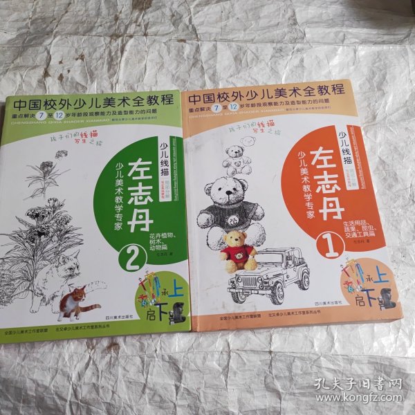 左志丹少儿线描写生系统教程局部分解1.2两册合售1生活用品蔬果昆虫交通工具篇,2册花卉植物,树木,动物篇 2册定价198元.页数609页,