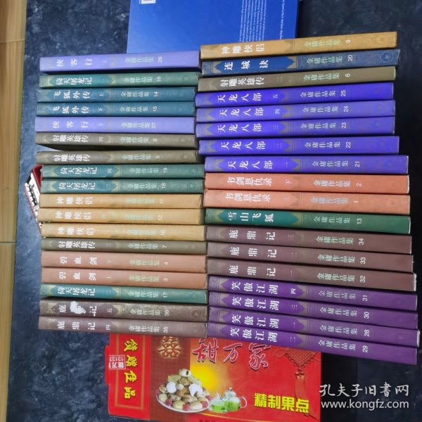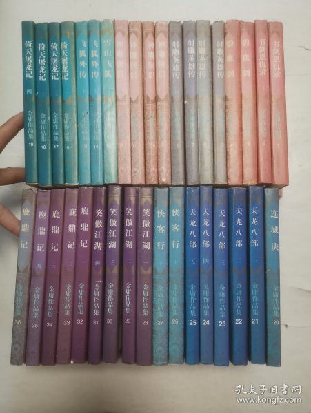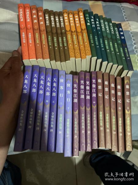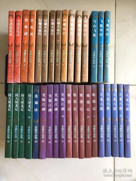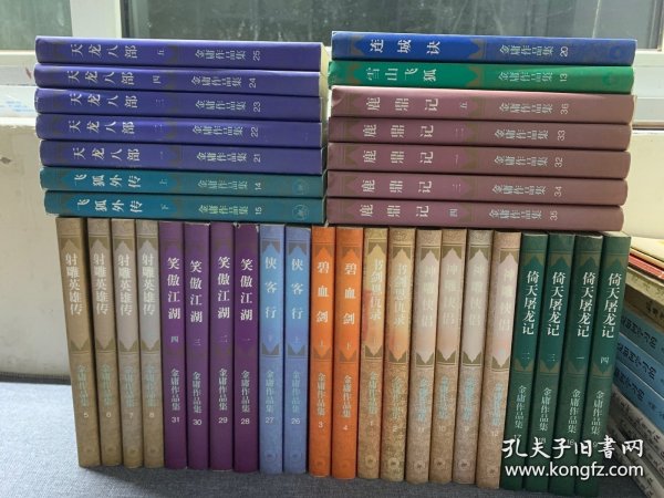 买家注意!褪色如图、装订全部锁线装,看实物图辨真伪自鉴。《鹿鼎记》有一、缺后四本、1994年5月第一版,1996年2月北京第三次印刷