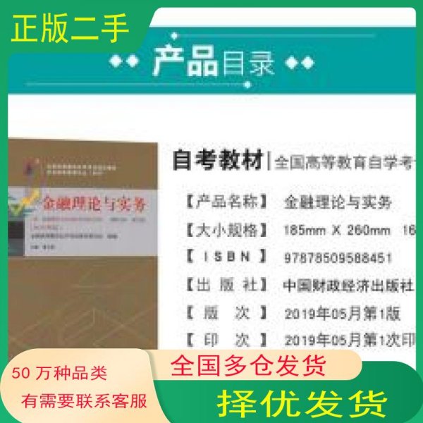 【正版二手】金融理论与实务贾玉革2019版中国财政经济出版社自考教材代码00150
