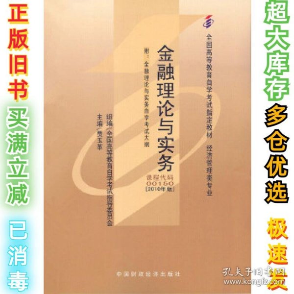 自考教材00150金融理论与实务2019版中国财政经济出版社