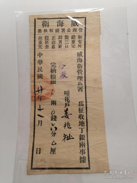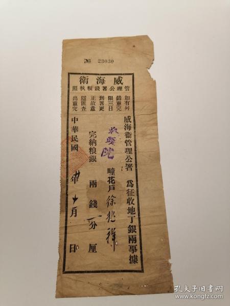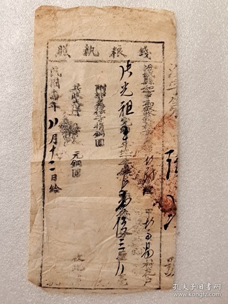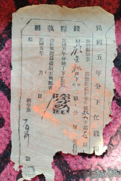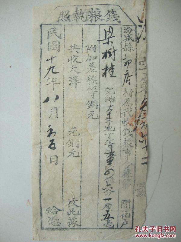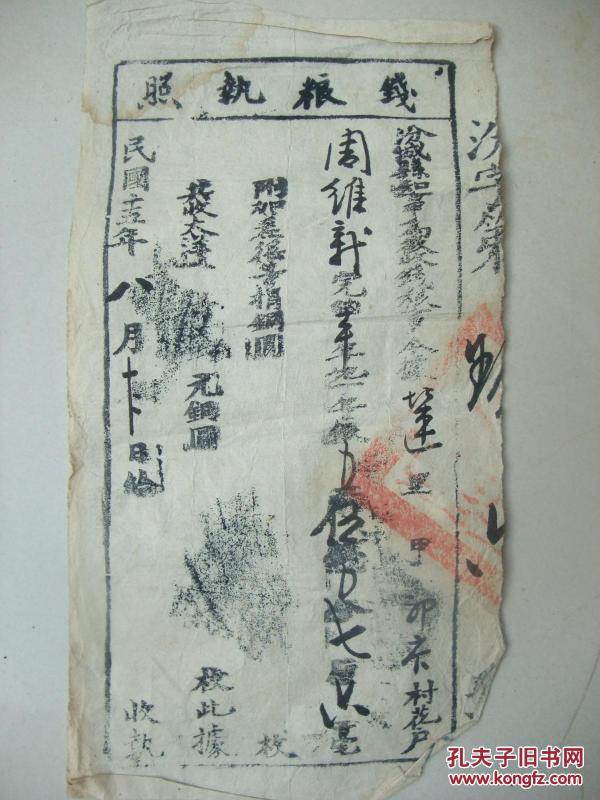 出版社 忻县征收地丁钱粮执照