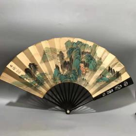 作者 一把山水画背诗文檀木银丝折扇