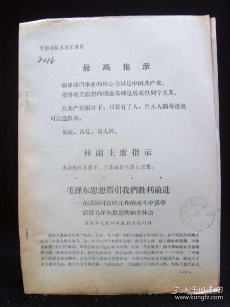 出版社 重庆市大渡口跃进村可控硅组/重庆工农化工厂革命委员会