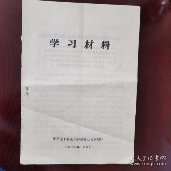 出版社 中共原平县委批林批孔办公室翻印